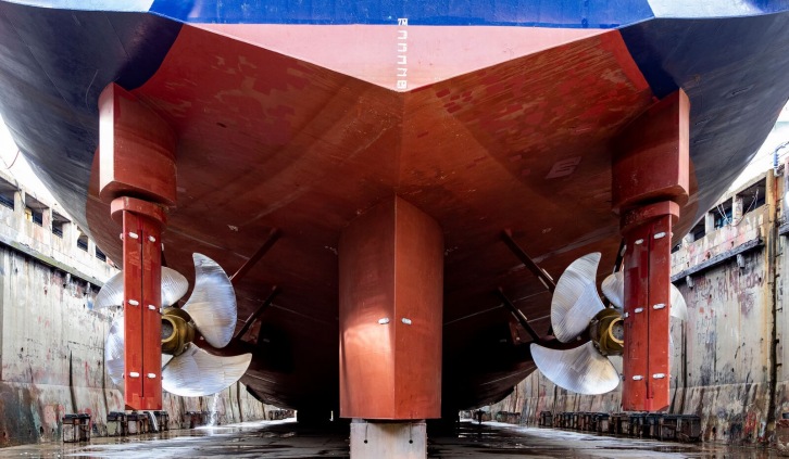 Cleaning starboard rudder. Image by Damen Shipyards Group.