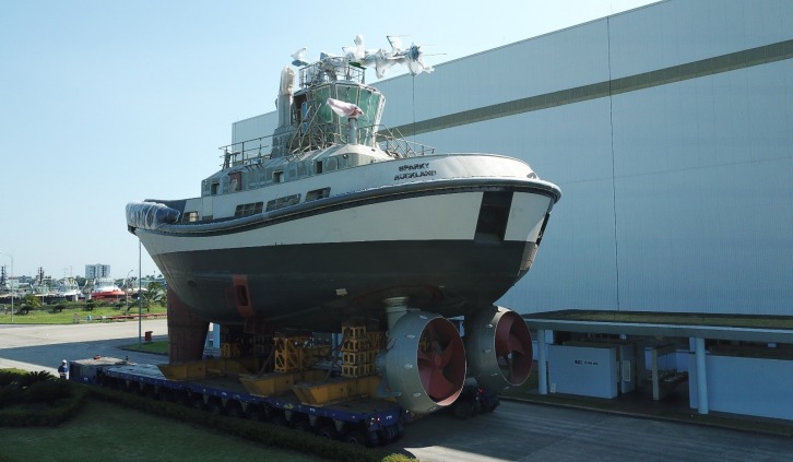 Sparky is being transported to painting shop. Image by Damen Shipyards Group. Damen Shipyards Group press release