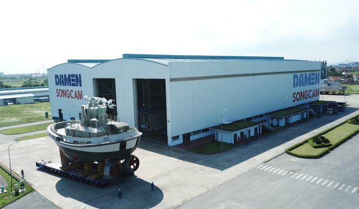 18 June 2021 Damen Shipyards Group has reached a major milestone in the construction of its first fully-electric Reversed Stern Drive tug. The shipbuilder is constructing the RSD-E Tug 2513, named Sparky, for New Zealand's Ports of Auckland. Recently, Damen Song Cam Shipyard in Vietnam installed the tug's batteries. This involved the installation of some 2,240 batteries, totalling 2,784 kWh. With this, Sparky will carry out two or more berthing/unberthing operations with up to 70 tonnes bollard pull on a single charge. Following, it will take just two hours for the tug to recharge to its full capacity. For redundancy purposes, the batteries are arranged in strings. If one battery in a string were to fail, the others would simply carry on the work. Ports of Auckland placed the order with Damen in August, 2019. The ports' intention is to be fully zero emissions by 2040. To achieve this, they needed a zero emissions tug. Work continues on Sparky and Damen anticipates delivery to be end of this year. Damen, with its goal of becoming the world's most sustainable shipbuilder, was keen to take on the challenge. The shipyards group already has extensive experience in the construction of fully electric vessels. Damen has delivered seven fully-electric Ferries 2306 E3 for the City of Copenhagen in Denmark, and a fully-electric Cutter Suction Dredger 650 for an Australian client. The shipbuilder is also constructing fully electric ferries for Ontario, Canada; a Road Ferry 6819 E3 & Road Ferry 9819 E3, as well as six hybrid Road Ferries 8117 E3 for BC Ferries, British Columbia, Canada. The hybrid vessels are being prepared for future conversion to full electric. Additionally, Damen is constructing nine waterbuses for Blue Amigo to operate in the Netherlands. Three of the vessels will be fully electric, while the remaining hybrid waterbuses will be prepared for future conversion to full electric. Damen has delivered electric vessels with a total of 20 mW of battery power to date. The E3 certification is Damen's in-house developed sustainability accreditation for its vessels. It stands for environmentally friendly, efficient in operation and economically viable. Damen's strategy is to further develop its existing ship types into electric versions, drawing on proven solutions and combining them with innovation for increased efficiency and sustainability. In addition to the RSD Tug 2513, Damen is also able to electrify its ASD Tug 2813.