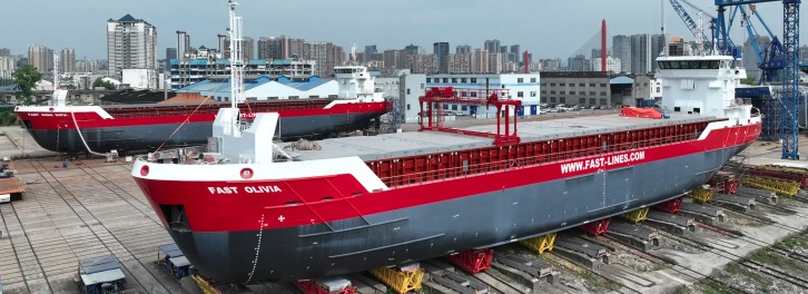 For Fast, this includes the installation of a harbour generator and a larger than standard shore power connection. As is typical for the short sea sector, Fast's vessels spend significant amounts of time in port. With this, the CF 3850 vessels will be able to connect to electrical power in ports once infrastructure becomes more widely available, reducing noise and emissions in port. Crew, cranes and connectivity The company has also opted to increase crane capacity to reduce the manual handling required of its crews. Fast has also amended the layout of the ships to ensure that more storage spaces are accessible by crane. A further benefit for Fast was Damen Triton. With the IoT solution, thousands of sensors located around the vessel collect data, informing decision making and leading to increased efficiency. A vessel for the future Reflecting on the decision to commission Damen for the project, Fast Lines Belgium Chair Catrien Scheers said, "The Damen vessel stands out in the market. It is both fuel efficient and smart. With the Triton system on board, we will be able to demonstrate fuel efficiency to our clients in real time. On top of that, Damen is a company with a long track record. And, they are building standard ships, which offers considerable added value. As well as speeding up the construction process, building in series is a way to boost efficiency for the industry. Together, we are building vessels for the future." The CF 3850 vessels are being constructed at the Damen Yichang Shipyard in China. Damen builds its cargo vessels at locations in both China and Vietnam, thereby ensuring the capacity to meet demand for the popular designs.