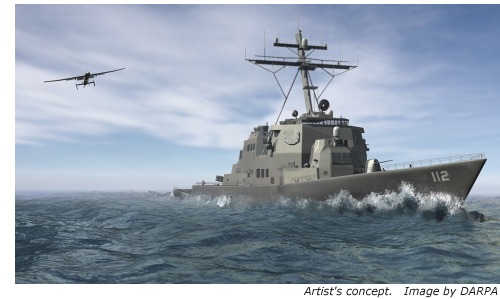 DARPA seeks proposals that would design, develop and demonstrate a MALE UAV and an associated automated launch and recovery system. The UAV would have to carry a 600-pound payload and have an operational radius of 600 to 900 nautical miles from its host vessel. The launch and recovery system would have to fit Littoral Combat Ship 2 (LCS-2)-class ships and other surface combat vessels as feasible.