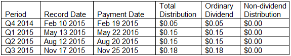 Hamilton, Bermuda - January 27, 2016 In 2015, DHT Holdings, Inc. (NYSE:DHT) paid four cash distributions to its shareholders. For US tax purposes, a portion of these distributions is potentially classified as ordinary dividend income and the remaining portion is classified as non-dividend distributions. The table below provides the breakdown for each of the distributions. All amounts in US$ per share. Common shares