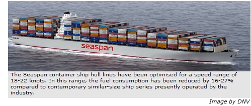 “In this economic climate, where it really is a buyer’s market, the time is ripe to push for technological improvements. We are fortunate to have found a like-minded shipyard and design partners in Maric and DNV,” says Mr Curtis. Optimised speed range The ship hull lines have been optimised for a speed range of 18-22 knots. In this range, the fuel consumption has been reduced by 16-27% compared to contemporary similar-size ship series presently operated by the industry. The new SAVER design is also capable of reaching 25 knots as the focus on schedule reliability is expected to increase. The new trend reflects the operational profile of the liner companies. Slow steaming will continue, depending on the market situation and the value of goods carried on board. Most container vessels will operate at a range of speeds and must do so using as little fuel as possible. “These new container vessels have exciting new features that make them efficient, cost effective and more environmentally friendly. We’re proud to have been involved in developing this new generation of container vessels,” says Remi Eriksen, Head of DNV’s Division Asia, Pacific and the Middle East. He adds that DNV will do its utmost to provide quality and professional class services to this project. The new 10,000 TEU container vessels have been developed in close cooperation between the Yangzijiang Shipbuilding Group, the Marine Design and Research Institute of China (MARIC), the owner Seaspan and DNV. About Seaspan Seaspan is a leading independent charter owner of container vessels, which it charters primarily pursuant to long-term fixed-rate time charters to major container liner companies. Seaspan’s contracted fleet of 69 container vessels consists of 60 vessels in operation and nine container vessels scheduled for delivery by March 2012. Seaspan’s operating fleet of 60 vessels has an average age of approximately five years and an average remaining charter period of some seven years. About Yangzijiang Shipbuilding Group Ltd The Yangzijiang Shipbuilding Group is one of the largest private shipyard groups in China, with four shipyards and a number of non-shipbuilding subsidiaries. The Group is listed in Singapore and Taiwan and ranks first in economic efficiency in the Chinese shipbuilding industry. About DNV DNV is a global provider of risk management services with the purpose of safeguarding life, property and the environment. Organised as an independent, autonomous foundation, DNV balances the needs of business and society, based on its independence and integrity. DNV serves a range of high-risk industries, with a special focus on the maritime and energy sectors. Established in 1864, the company has a global presence with a network of 300 offices in 100 countries. Source: DNV press release |