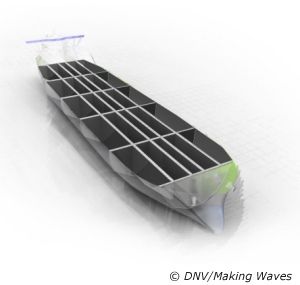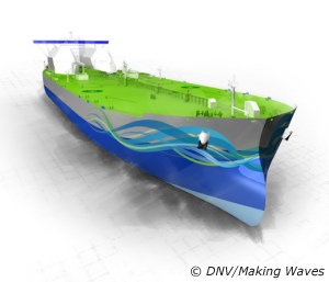 The new concept tanker has two high pressure dual fuel slow speed main engines fuelled by LNG, with marine gas oil as pilot fuel. The next phase of the Triality concept development will review the use of dual fuel medium speed engines and pure gas engines. Two IMO type C pressure tanks capable of holding 13 500 m3 LNG - enough for 25 000 nautical miles of operation - are located on the deck in front of the superstructure. The generators are dual fuel (LNG and marine gas oil) while the auxiliary boilers producing steam for the cargo oil pumps operate on recovered cargo vapours (VOCs). No ballast water A traditional tanker in unloaded transit needs ballast water to obtain full propeller immersion and sufficient forward draft to avoid bottom slamming. The new V-shaped hull form and cargo tank arrangements completely eliminate the need for ballast water in the VLCC version. There will also be much less need for ballast water on other kinds of crude oil tankers, such as Suezmax, Aframax and smaller ships. The new hull shape results in a reduced wetted surface on a round trip and has a lower block coefficient and thus a more energy efficient hull. A VLCC in unloaded transit will normally carry between 80 000 and 100 000 tons of sea water containing organisms that can cause damage when released into foreign ecosystems. In addition, a lot of fuel is needed just to transport this extra water. And finally, the initial coating and later maintenance of ballast tanks during operations are among a shipowner’s main concerns. The Triality VLCC can collect and liquefy more than 500 tons of cargo vapours during one single round trip. These liquefied petroleum gases will then be stored in deck tanks and up to half will be used as fuel for the boilers during cargo discharge, while the rest can be returned to the cargo tanks or delivered to shore during oil cargo discharge. Environmentally superior ship also profitable When it comes to the additional cost of building a vessel like Triality and the reduced cost of operating it, Henrik O. Madsen’s conclusion is clear: “It is possible to develop an environmentally superior ship and be profitable at the same time. Our best estimate is an additional capital expenditure of 10-15% for a Triality VLCC newbuilding compared to a traditional VLCC. Even with this extra cost included, we estimate a reduced life cycle cost equal to 25% of the newbuilding cost for a traditional VLCC. “Triality is a concept vessel and a ship builder will need to prepare a detailed design before the first Triality crude oil tanker can be constructed. The Triality concept is based on well known and proven components and systems, so in principle a Triality crude oil tanker introducing all or some of the innovative elements in the concept can be designed today. I am convinced that the Triality concept will create great interest among ship builders and crude oil tanker operators, so that the first Triality crude oil tanker will leave a shipyard before the end of 2014,” concludes DNV CEO Henrik O. Madsen. DNV |