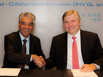 To promote liquefied natural gas (LNG) as fuel within the maritime and offshore industry a memorandum of understanding (MOU) was signed today between DNV GL and Qatar’s premier shipyard Nakilat-Keppel Offshore & Marine (N-KOM). The signing ceremony took place during DNV GL’s 150th anniversary celebrations in Dubai, at which N-KOM’s CEO Chandru Rajwani and Dr Henrik Madsen, DNV GL’s Group President and Chief Executive Officer, signed the memorandum. The MOU will further strengthen the position of N-KOM, which is a joint-venture between Qatar Gas Transport Company (Nakilat) and Keppel Offshore & Marine, in the areas of LNG-fuelled vessel conversions and construction of related floating assets. N-KOM will capitalize on DNV GL’s deep competence and long-standing experience in LNG, working with shipyards, ship owners and other key stakeholders on a global basis to develop synergies related to the promotion of LNG as fuel within the maritime and offshore industry. “Qatar is the single largest producer and exporter of liquefied natural gas in the world and has become a leading cluster for gas related activities. Therefore, we look forward to establishing a valuable partnership with N-KOM which further cements our strong market position on LNG as fuel in this region and benefits the environment by making the shipping industry greener,” said Dr Henrik Madsen. Mr Chandru Rajwani said, “N-KOM has already established itself as a leading destination for gas carrier repairs in the region. With the signing of this MOU, we take a significant step further in becoming the preferred gas solutions provider on a global scale. Through mutually sharing our knowledge on latest technology, environmental, safety and quality issues with DNV GL, we will be able to offer our customers an even wider range of solutions and facilities for liquefied natural gas as marine fuel and other gas solutions.” As part of the agreement DNV GL and N-KOM will cooperate, amongst others, on the development and newbuilding of bunker barges, of coolant barges for temporary gas storage as well as to promote the use of LNG as fuel in the offshore sector. Moreover, a training program is to be conducted in the N-KOM facility on LNG carrier or LNG-fuelled vessel repairs. Finally, both partners will offer project management support for conversion projects to third party yards. About DNV GL DNV GL is the largest classification society in the world and dates back to 1864. Driven by the purpose of safeguarding life, property and the environment, the company enables organizations to advance the safety and sustainability of their business. Operating in more than 100 countries, DNV GL’s 16,000 professionals are dedicated to helping their customers in the maritime, oil & gas, energy and other industries to make the world safer, smarter and greener. About Nakilat-Keppel Offshore & Marine (N-KOM) Established in 2007, N-KOM is a joint venture between Qatar’s premier gas shipper Nakilat and leading offshore rig constructor and ship repairer Keppel Offshore & Marine Ltd. From its strategic location in the heart of the Arabian Gulf and within the world-class Erhama Bin Jaber Al Jalahma Shipyard complex, N-KOM offers a comprehensive range of repair, conversion, maintenance and fabrication services for marine vessels, offshore and onshore structures. DNV GL press release |