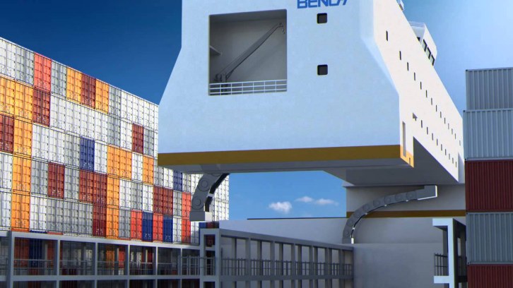 Classification society DNV GL has presented Hyundai Heavy Industries CO., LTD. (HHI) with an Approval in Principle (AiP) certificate at the Nor-Shipping exhibition in Oslo today. The result of development conducted by HHI and co-work closely together with DNV GL, the certificate confirms that the concept complies with the DNV GL rules for the classification of ships. HHI’s Senior Executive Vice President & COO of Shipbuilding Division, Yoon Moon-kyoon, was presented with the certificate by Tor E. Svensen, CEO of DNV GL – Maritime, at a ceremony at the DNV GL booth. June 02, 2015 - Author: Simon David Adams First demonstrated at the SMM trade fair in Hamburg last year, the SkyBench concept is an innovative design to increase the cargo capacity of large container vessels. The bridge and upper three decks of a “twin island” design container would be constructed as a separate sliding block, mounted on rails and able to move over the length of two 40ft container bays. In combination with a resizing and relocation of fuel tanks and the utilization of the void spaces beneath the accommodation block in a traditional design, this allows the addition of two extra 20ft container bays. The resulting cargo increase amounts to 270 TEU on a 17-row wide 10,000 TEU ship, 450 TEU on a 23-row wide 19,000 TEU ship and 350 TEU on a 20-row wide 14,000 TEU vessel. “We would like to extend our sincere appreciation to DNV GL for the approval of our SkyBench concept design,” said Yoon Moon-kyoon. “As we have been doing over the past four decades, we will continue to provide competitive ships differentiated from others in terms of quality, reliability and technological capabilities to our valued clients. I believe that SkyBench, like many other previous technological breakthroughs we have shown to the world, will surely bring benefits to our customers.” “This was an extremely interesting and exciting project and we are very pleased that HHI selected us to work with them to realize this concept,” said Tor E. Svensen. “The SkyBench shows how the industry’s increased focus on efficiency and maximizing transport capacity has really sparked innovation in design and operation. Additionally, the potential of this design to offset reduced cargo capacity when choosing LNG as ship fuel means that HHI can offer a design tailored to meet stricter sulphur emission limits in the future.” The SkyBench mechanism takes ten minutes to operate, using four electric drive train units to move the block backwards from its normal position. The two 40ft side casings on which the accommodation block rests provide structural strength and hold lifeboats, provision cranes and utility rooms. In an emergency, the sliding block is detachable and is designed to float independently of the vessel. Possible principle dimensions of a SkyBench container carrier: