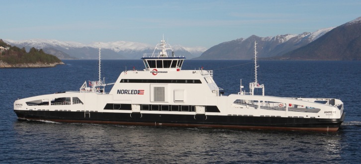 Published: September 10, 2015 - Author: Nikos Späth The 80 metre long DNV GL classed vessel is one of three ferries operated by the Norwegian shipping company Norled between Lavik and Oppedal and is able to carry 120 cars and 360 passengers. “Ampere is trading in Sognefjord with 100 per cent regularity and consumes 50 per cent less energy compared with a traditional diesel ferry on the same route. It has proven to be a huge success for Norled,” said Claes Skat-Rørdam of award sponsor Hempel on behalf of the judges. Tord Helland, Finance Director at Norled, accepted the award in London yesterday. “The Ship Efficiency Award is not only recognition for the hard work we have done with our project partners, but it also confirms our efforts and contribution to the global climate goals by reducing air pollution,” Helland said. “An electrical ferry that can save up to one million litres of fuel annually, thereby preventing 2,640 tonnes of carbon dioxide from entering the atmosphere, can make a strong statement in this regard.” Ampere runs 34 times a day with a crossing time of 20 minutes. Between the trips the 1MWh lithium-polymer battery pack on board can be charged in only ten minutes. “We are honoured that Ampere has received this internationally coveted award,” said Stephen Bligh, Head of Shipping Advisory UK at DNV GL. “As a classification society, together with the shipyard Fjellstrand and the various technology providers, we have helped to make the vision of operator Norled happen and demonstrated that new clean technologies don’t compromise market competitiveness.” Ampere has been awarded the DNV GL class notation 1A1 LC R4 (nor) Car Ferry C Battery Power. The notation is mandatory for vessels that use batteries as one of their main sources – or the sole source – of energy for propulsion. DNV GL has also developed several services to promote battery and hybrid technology in shipping, such as a guideline for large maritime battery systems, a new tool for qualifying battery-related systems, a battery ready service (technical, economic and environmental performance analyses), battery sizing and optimisation tools and an introduction course to maritime battery systems. About Norled Norled AS is one of Norway's largest ferry and express boat operators. The company has 80 vessels and operates ferry and express boat services from the Oslofjord to Troms county. Norled has invested significantly in new types of vessels and eco-friendly technology, and has developed solutions used solely by the company. The company has over 1,000 employees with its head office located in Stavanger and branch offices in Bergen and Oslo. Norled AS is a wholly owned subsidiary of Det Stavangerske Dampskibsselskap AS. More information: www.norled.no/en/ About DNV GL Driven by its purpose of safeguarding life, property and the environment, DNV GL enables organizations to advance the safety and sustainability of their business. Operating in more than 100 countries, the company’s 16,000 professionals are dedicated to helping their customers in the maritime, oil & gas, energy and other industries to make the world safer, smarter and greener. More information: www.dnvgl.com/maritime About the Ship Efficiency Awards 2015 The Ship Efficiency Awards are organized by maritime eco-efficiency specialist Fathom. They aim to recognize organisations and individuals operating in the international maritime community that are excelling in efficient operations, implementing fresh thinking, offering proven efficiency benefits and driving technological innovation. The judging of nominations in each of the six Ship Efficiency Awards categories is conducted by a panel of high level industry experts across the maritime industry that had independently scored and selected the nominees based on stringent environmental criteria. More information: www.fathomshippingevents.com