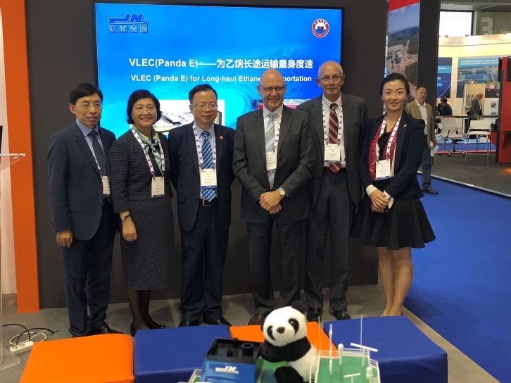 18 September 2018 Leading classification society DNV GL has awarded Chinese shipyard Jiangnan with an Approval in Principle (AiP) for the design of a 93,000-cubic meter (cbm) very large ethane carrier. Johan Petter Tutturen, Business Director Gas Carriers, DNV GL – Maritime, presented the AiP certificate to Hu Keyi, Chief Engineer of Jiangnan Shipyard (Group) Co., Ltd, at the Gastech trade fair in Barcelona. The flexible, efficient and environmentally friendly design was developed by Jiangnan Shipyard in cooperation with GTT, DNV GL and major equipment manufacturers. “Jiangnan and DNV GL have successfully collaborated on the joint design development and classification for various ship types, particularly in our leading ship type gas carriers,” said Hu Keyi. “We have completed China’s first Mark III / Mark III Flex model tanks and moved into the membrane-type liquefied gas carrier market. With this latest AiP, we have laid a solid foundation for introducing this ship type to the market and will further enrich our product portfolio in gas carriers and gas-fuelled ship types, which will benefit our clients and, at the same time, reduce emissions. Both Jiangnan and DNV GL will gain from the deeper and broader cooperation that this AiP represents.” “I am very pleased to be able to present this certificate to Jiangnan Shipyard, continuing a very productive and long-standing relationship,” said Johan Petter Tutturen. “As the gas segment continues to gain importance in shipping, new designs that offer greater efficiency and compliance are important in advancing the segment. We are very proud to support Jiangnan Shipyard in realizing this new concept.” The vessel will utilize GTT’s reinforced Mark III cargo containment system with a design temperature of minus 104 degrees centigrade. Four standard cargo holds are capable of carrying ethane, ethylene and liquid petroleum gas (LPG), with a capacity of 93,000 cubic meters in total. Significantly reduced fuel consumption was achieved after several rounds of hull form optimizations. The proposed dual-fuel ethane / fuel oil main propulsion system with selective catalytic reduction (SCR) meets the IMO NOx Tier III requirements. Further innovative features are a deck tank, shaft generator and an “LNG Ready” concept. Additionally, a USCG-certified ballast water treatment system has been applied to meet the upcoming regulations.