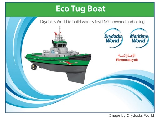 Drydocks World and Dubai Maritime City (DMC), the leading provider of services to the shipping, maritime, oil, gas & energy sector is supporting the "Green Economy for Sustainable Development" initiative launched by His Highness Sheikh Mohammed bin Rashid Al Maktoum, Vice President of UAE and Ruler of Dubai. As part of this initiative, the company has entered into Memoranda of Understanding with Wartsila and Dubai Carbon Centre of Excellence for building the world’s first LNG powered harbor tug. This project launched under the trade mark “Elemarateyah” is part of the Dubai Maritime Green Initiative, a strategic movement to encourage all-round environmental excellence in maritime and allied sectors including oil, gas and energy. This landmark undertaking in which the tug will have a dual engine capable of operating with both traditional MDO & LNG, will represent a major breakthrough that would decide the future of green technology. Emirates Classification (TASNEEF) had earlier signed a landmark partnership agreement with Drydocks World as part of the Initiative.