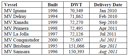 • The Company sold the 151,066 DWT Capesize bulker M.V. Brisbane (built in 1995).