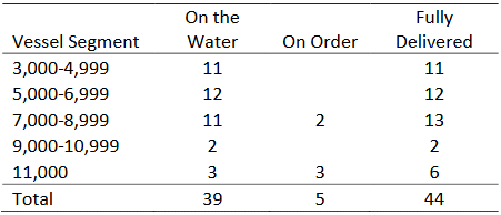 Singapore, 13 May 2016 Epic Gas Ltd. announced today that the 11,000cbm LPG carrier Epic Shikoku, the third vessel in the Company’s series of eight newbuildings, delivered on 13th May 2016 from Kyokuyo Shipyard, Japan. Epic Gas remains committed to the delivery of a high quality fleet of long term controlled assets across the full pressurised sector of 3,300 – 11,000cbm, with an outstanding new building program of two 7,500cbm vessels and two 11,000cbm vessels, plus an additional 11,000cbm new building to be delivered under a bareboat charter to Epic Gas. The Company’s fleet is segmented as follows: