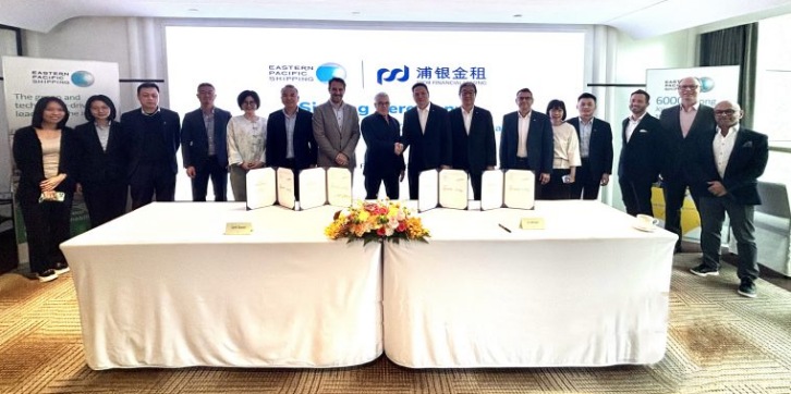 Shanghai - 26 February 2025 Eastern Pacific Shipping (EPS) and SPDB Financial Leasing Co., Ltd. (SPDBFL) have signed a financing agreement for two newbuild LNG dual-fuel Neo-Panamax container ships. The signing ceremony took place in Shanghai, reinforcing the strong partnership between the two companies in sustainable ship financing. The event was attended by senior representatives from both organizations, including Mr. Idan Ofer, Principal of EPS and Cyril Ducau, CEO of EPS. Representing SPDBFL were Deputy Party Committee Secretary Wei Qiang and Vice President Liu Bingyan. The financing agreement was officially signed by Cyril Ducau and Liu Bingyan on behalf of EPS and SPDBFL, respectively. The two newbuilds are currently under construction at Jiangsu New Times Shipbuilding Co., Ltd. Each vessel spans 366 meters in length, 56 meters in width, and has a structural draft of 30.2 meters. Powered by LNG dual-fuel propulsion, these ships comply with IMO Tier III emission standards and feature exceptional energy efficiency, underscoring their role in advancing green shipping and sustainable maritime operations. As a leading global shipowner with a fleet of over 300 vessels, EPS remains at the forefront of industry's green transformation. This agreement further strengthens the longstanding collaboration between EPS and SPDBFL, exemplifying SPDBFL's commitment to international shipping finance, supporting China's shipbuilding sector, and fostering closer industry-finance integration. Looking ahead, SPDBFL and EPS will continue to expand their cooperation, driving the development of green, energy-efficient, and environmentally friendly vessels. SPDBFL remains dedicated to supporting the maritime industry's transition toward sustainable shipping and contributing to the high-quality advancement of China's shipbuilding industry.