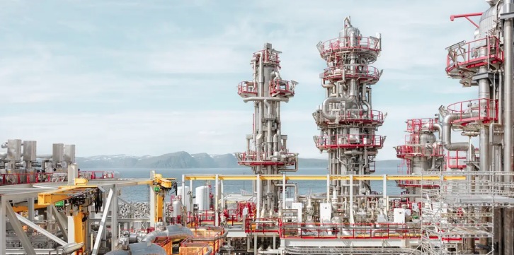 The Hammerfest LNG facility. (Photo: Einar Aslaksen / Equinor ASA) • Hammerfest LNG (HLNG), Norway’s and Europe’s first large-scale liquified natural gas (LNG) plant, has been online since 2007. • The plant at Melkøya outside Hammerfest receives gas through a 143-kilometre pipeline from the Snøhvit field in the Barents Sea. • At the plant condensate, water and CO2 are separated from the well stream before the natural gas is cooled down to a liquid state and stored in dedicated tanks. Cooling down the gas to -163 degrees reduces its volume 620 times. • The gas is then exported in purpose-built LNG tankers. CO2 is injected and stored in a geological formation below the Snøhvit reservoir. • Around 750,000 tonnes of CO2 are removed each year from the well stream and brought back to a suitable reservoir on the Snøhvit field. • Partners: - Equinor Energy AS (operator) 36.79% - Petoro AS 30.00% - TotalEnergies EP Norge AS 18.40% - Neptune Energy Norge AS 12.00% - Wintershall Dea Norge AS 2.81% Equinor - Press release