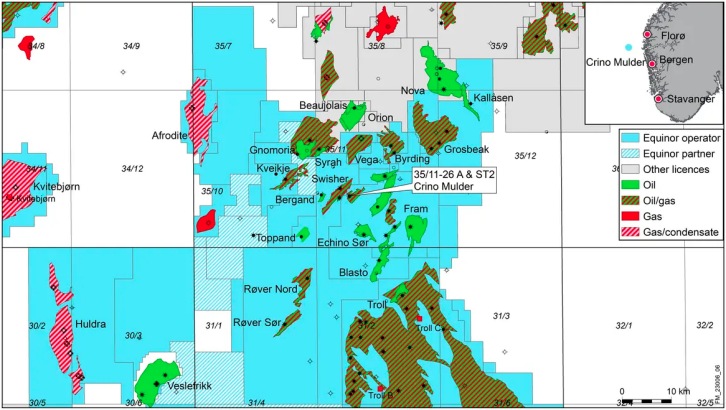18 August 2023 Equinor has made a new discovery in the Troll/Fram area in the northern North Sea. This is the ninth successful well in this area in 12 attempts since 2019. The volumes are estimated at between 9 and 35 million barrels of oil equivalent. The discovery consists of both oil and gas, mostly oil. The licensees regard the discovery as commercial and will consider tie-back to other discoveries and existing infrastructure in the area. One exploration well with a side-track has been drilled in the Crino/Mulder prospect about 4 km west of the Fram field and 130 kilometres northwest of Bergen. The well was drilled by the Deepsea Stavanger drilling rig. Equinor is the operator of the licence, and Var Energi, INPEX Idemitsu Norge and Neptune Energy Norge are partners. "It is positive that we can still make such discoveries in an area with a good oil and gas infrastructure, allowing the discoveries to be developed at low costs and with low CO2 emissions," says Geir Sortveit, Equinor's senior vice president for Exploration & Production West. The eight previous discoveries in the area are: Echino South, Swisher, Rover North, Blasto, Toppand, Kveikje, Rover South and Heisenberg. The licence owners • Equinor Energy AS: 45% • Var Energi ASA: 25% • INPEX Idemitsu Norge AS: 15% • Neptune Energy Norge AS: 15%