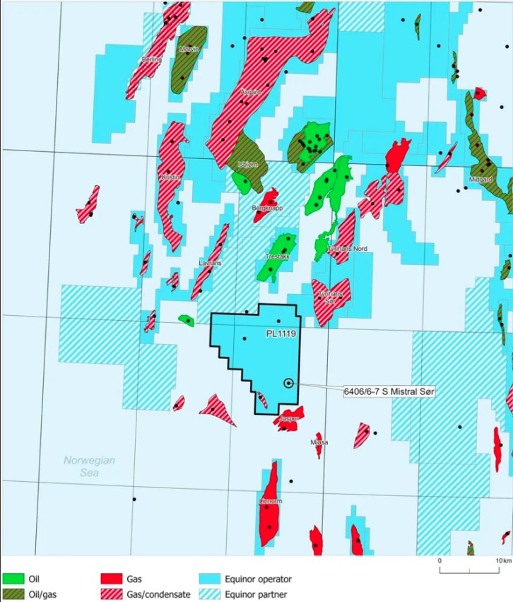 05 March 2025 Equinor and its partners, Okea and Pandion Energy, have proven gas and condensate in the "Mistral Sor" exploration well in the Halten area, situated in the southern part of the Norwegian Sea. Preliminary estimates indicate that the discovery contains 3-7 million standard cubic metres (Sm3) of recoverable oil equivalent (o.e.), which corresponds to 19-44 million barrels of recoverable o.e. "Norwegian gas is in high demand and is crucial to Europe's energy security. That's why it's important for us to continue exploring and making new discoveries so we can maintain a high level of deliveries. This discovery was made in an area where gas infrastructure is already in place, and which we're also continuing to develop. We have active exploration efforts under way in this area, which have resulted in several discoveries in recent years," says Grete B. Haaland, Equinor's senior vice president for Exploration & Production North.