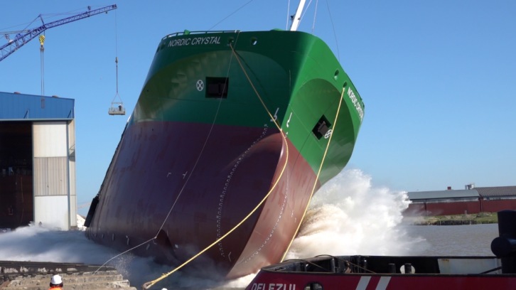 26 April 2022 On Friday April 22, the multi-purpose dry cargo vessel Nordic Crystal was launched on site at the yard in Leer, Germany. The naming ceremony was performed by Godmother Helena Backstrom in a festive setting with guests from near and far celebrating the first launching in two years, after the corona restrictions have been lifted. Nordic Crystal and her sister vessel, due for delivery next year, are both a further evolvement of Erik Thun's existing fleet. Focus on efficiency, environmental care and customers' needs has been essential when developing the new vessels. They are built to the absolute latest design meeting and often exceeding existing and forthcoming regulations. Reduced fuel consumption, an increased cargo intake, less exhaust emissions and lowered noise levels are a few examples of their trademarks. The new-buildings are equipped with a frequency converter for versatile shore power connection. "This launching is a great example of our vision to be a sustainable Swedish partner over generations, says Johan Kallsson, Managing Director at Erik Thun AB. We work closely with MF Shipping Group and the yard Ferus Smit, and together we are able to create this fantastic vessel." "We are looking forward to the next generation of vessels providing our clients with sustainable and smart solutions, delivering the cargo on time with the best environmental performance possible today" adds Jens Backstrom, Senior Charterer at Erik Thun AB. Nordic Crystal is the 40th vessel built together with Ferus Smit B.V. and she will be delivered in the end of May 2022. Her sister is planned for delivery in March 2023.