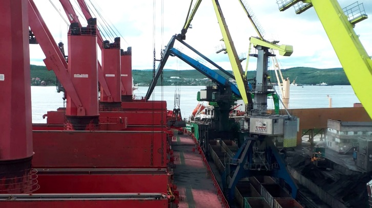 Kumpula loading in Murmansk. Taken by Master of Kumpula. Image by ESL Shipping.