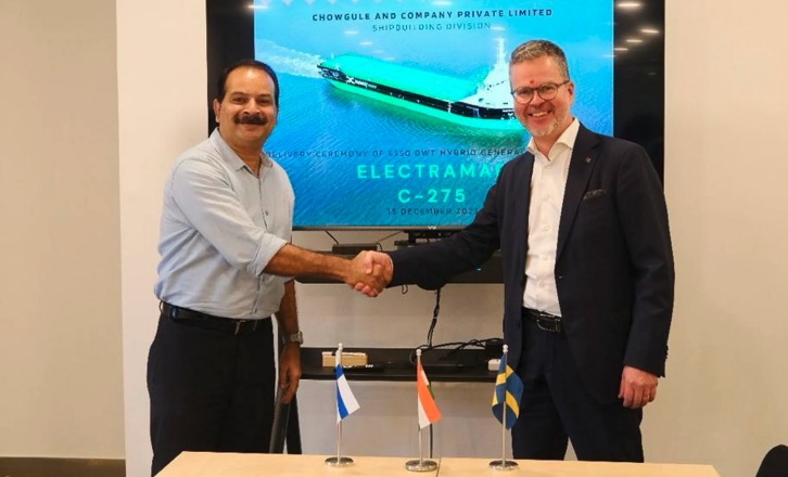 Shipyard Director Shrikant Itagi, Chowgule Shipbuilding and Managing Director Mikki Koskinen, ESL Shipping. Image by ESL Shipping Ltd. ESL Shipping Ltd. press release