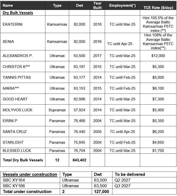Note: (*) Represents the earliest redelivery date (**) The average Baltic Kamsarmax P5TC Index is an index based on five Panamax time charter routes. (***) Vessel is 61% owned by EuroDry Ltd. About EuroDry Ltd