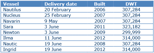 Singapore Pte Ltd., the company announces today that 8 of the VLCCs have been delivered in the first half of 2014.