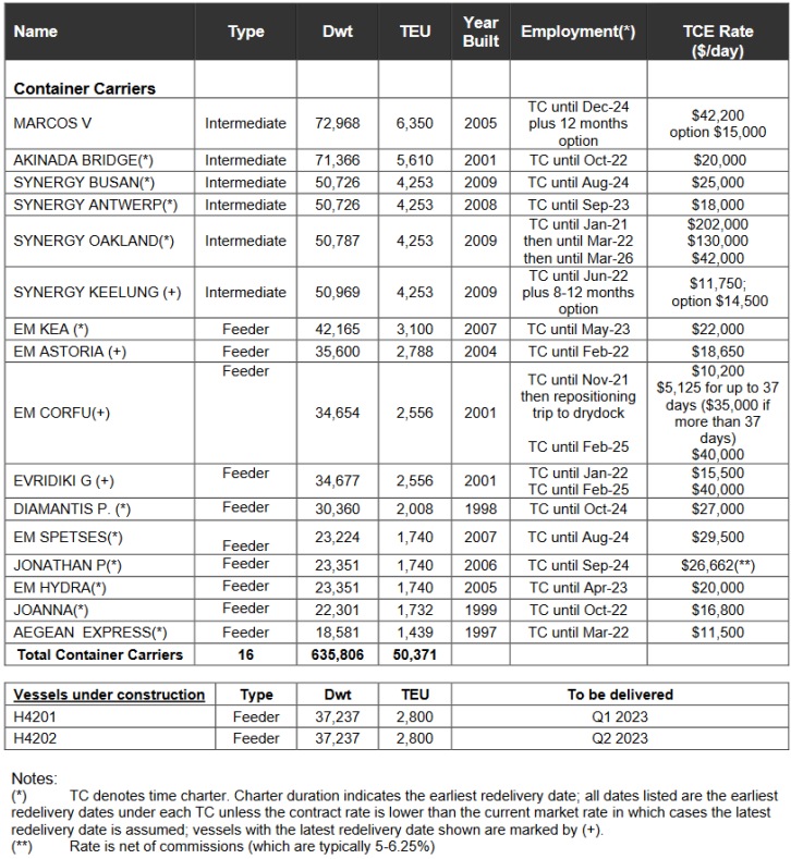 Maroussi, Athens, Greece - November 29, 2021 Euroseas Ltd. (NASDAQ: ESEA, the "Company" or “Euroseas”), an owner and operator of container vessels and provider of seaborne transportation for containerized cargoes, announced today the extension of the charter of its container vessels M/V "Evridiki G" and a new time charter contract for its container vessel M/V "EM Corfu". Specifically: • M/V "Evridiki G", a 2,556 TEU vessel built in 2001, entered into a new time charter contract for a period of between a minimum of thirty-six and a maximum of thirty-eight months at the option of the charterer, at a daily rate of $40,000. The new rate will commence on February 1, 2022. • M/V "EM Corfu", a 2,556 TEU vessel built in 2001, entered into a new time charter contract for a period of between a minimum of thirty-six and a maximum of thirty-eight months at the option of the charterer, at a daily rate of $40,000. The new rate will commence upon completion of the vessel’s drydocking in mid-February 2022 Aristides Pittas, Chairman and CEO of Euroseas commented: "We are very pleased to announce new charters for two of our vessels for periods of at least three years each at rates more than twice the levels of their existing employment. The new charters secure a minimum of $85m of contracted revenues and are expected to make an annualized EBITDA contribution in excess of $22.3m combined which is about $19m (or, at least, seven times) higher than their joint contribution over the last twelve months of about $3m. These new charters significantly improve both our profitability and cash flow visibility with our charter coverage for 2022 now exceeding 85% and for 2023 55%. Undoubtedly, the containership markets continue to show their strength and momentum as indicated by the rate and the duration of the above charters. We expect to be able to continue benefitting from the present strong market as there are another two of our vessels opening up for re-chartering within the next four months and, yet, another two vessels later in 2022. Furthermore, we started exploring chartering options for our two newbuildings which are expected to be delivered by the end of first and second quarters of 2023, respectively, as initially scheduled. If the present market levels continue, renewals of expiring charters should result in significant further increases in our profitability and employment coverage for the following years, providing a solid liquidity foundation for further growth of our company and rewards to our shareholders as our Board or Directors sees fit." Fleet Profile: After the new charters of M/V “Evridiki G” and M/V “EM Corfu” the Euroseas Ltd. fleet and employment profile will be as follows: