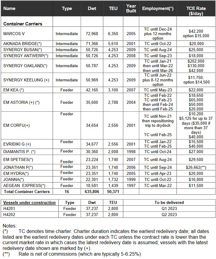 About Euroseas Ltd. Euroseas Ltd. was formed on May 5, 2005 under the laws of the Republic of the Marshall Islands to consolidate the ship owning interests of the Pittas family of Athens, Greece, which has been in the shipping business over the past 140 years. Euroseas trades on the NASDAQ Capital Market under the ticker ESEA. Euroseas operates in the container shipping market. Euroseas' operations are managed by Eurobulk Ltd., an ISO 9001:2008 and ISO 14001:2004 certified affiliated ship management company, which is responsible for the day-to-day commercial and technical management and operations of the vessels. Euroseas employs its vessels on spot and period charters and through pool arrangements. The Company currently has a fleet of 16 vessels comprising of 10 Feeder and 6 Intermediate containerships. Euroseas 16 containerships have a cargo capacity of 50,371 teu. Furthermore, after the delivery of two feeder containership newbuildings in the first half of 2023, Euroseas’ fleet will consist of 18 vessels with a total carrying capacity of 55,971 teu. Euroseas Ltd. Press Release