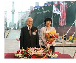Ever Liven, the tenth in a series of L-type containership to be operated by Evergreen Line, was christened by S.S. Lin, the Evergreen Group's First Vice Group Chairman, at the Samsung Heavy Industries shipyard in Korea today. The official rope-cutting of the new 8,452-TEU vessel was performed by Mrs. Tsai Su-Hua in a ceremony attended by dignitaries from Taiwan, Korea and other nations.