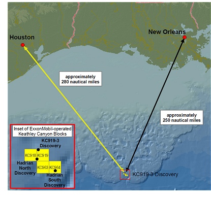 “We estimate a recoverable resource of more than 700 million barrels of oil equivalent combined in our Keathley Canyon blocks,” said Steve Greenlee, president of ExxonMobil Exploration Company. "This is one of the largest discoveries in the Gulf of Mexico in the last decade. More than 85 percent of the resource is oil with additional upside potential."