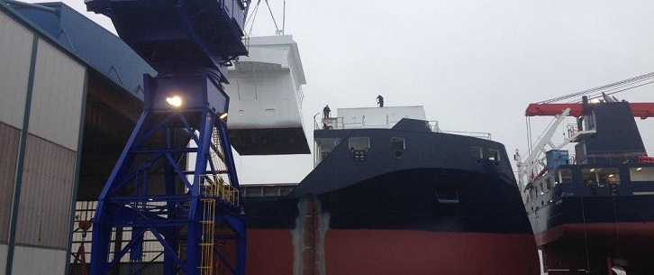 18 April 2016 On Friday the 29th of April, 11.00 hrs, our Nb. 420 will be launched in Leer. Nb. 420 will be christened as ‘Symphony Sun’, she is the fourth vessel in a series of 6 that will be delivered to Symphony Shipping. Symphony Sun is a vessel of our ‘Ecobox’ design, which is characterized by its flexibility of loading combined with very economical and ecological performance. The design features: • Main dimensions (Loa X B X T) 122.5 X 17.0 X 7.8 mtr. • 10500 DWT, 429.000 cft hold volume. • Iceclass 1A with 3000 kW main engine. • A large single hold of completely box shaped form. • Large loading floor area for project cargoes, including complete movable tweendeck. • 2 X 85 tons cargo cranes. • Deckhouse placed on foreship for better protection of deck cargo and enabling to load oversized items over the stern. • Open top notation; sailing in all weather conditions without maindeck hatches to transport large project cargoes without height restrictions. • The Ferus Smit ECO bulbless Canoe type bow, designed to reduce fuel costs and better sustained speed with excellent sea keeping behavior in harsh weather and sea state conditions. • Propeller equipped with a duct for enhanced thrust at lower speeds and reduction of maximum installed propulsion power. During the launching the yard will be open to the public.