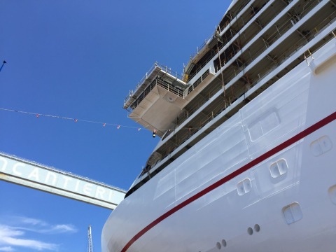 It will be the biggest ship ever built for Carnival Cruise Line’s Fleet Trieste, 25 June 2015 “Carnival Vista”, the new flagship of the Carnival Cruise Line’s fleet, brand of the Carnival Group, the world's largest cruise ship operator, was launched today at Fincantieri’s shipyard in Monfalcone. Interior fittings will now begin, leading the ship to its delivery, scheduled in spring 2016. The launching was introduced by the traditional and well-wishing “coin ceremony”, consisting, according to an ancient shipbuilding custom, in welding a silver dollar on the last deck of the ship. Godmothers of the ceremony were Heidi e Kye Heald, respectively wife and daughter of John Heald, Brand Ambassador of Carnival Corporation. The ceremony was attended by Benoit Clement, Vice President New Builds and Refurbishment of Carnival Cruise Line, while Fincantieri was represented among others by Gabriele Cocco, Senior Executive Vice President Merchant Ships Business Unit, and Attilio Dapelo, Director of the Monfalcone shipyard. With the construction of "Carnival Vista", Fincantieri consolidates its leadership in building the largest passenger ships in the Italian shipbuilding history. 133,500 gross tons and 321 meters long, these are the dimensions of “Carnival Vista”, the largest ship which Fincantieri has ever built for the Carnival Cruise Line’s fleet. It has 1,967 passenger cabins, 785 for the crew and it is able to accommodate more than 6,400 people onboard, including the staff. “Carnival Vista” will be a new technological benchmark, in Europe and worldwide, in terms of cutting-edge layout, extremely high performance and high quality technical solutions. The interior fittings will be of an extremely high level quality comfort, offering a wide range of onboard entertainments, such as an IMAX 3D cinema, a brewery (with onboard beer production), restaurants, theatres, shops and wellness centers. One of Carnival Vista’s innovation will be the Havana Area, a themed private and exclusive area, with cabins, open bars and a swimming pool. The access to this area is limited only to those passengers whose cabins are in the Havana Area. Fincantieri has built 70 cruise ships since 1990 (of which 47 from 2002) and other 14 ships are currently being designed or built in the Group's yards. Fincantieri press release |