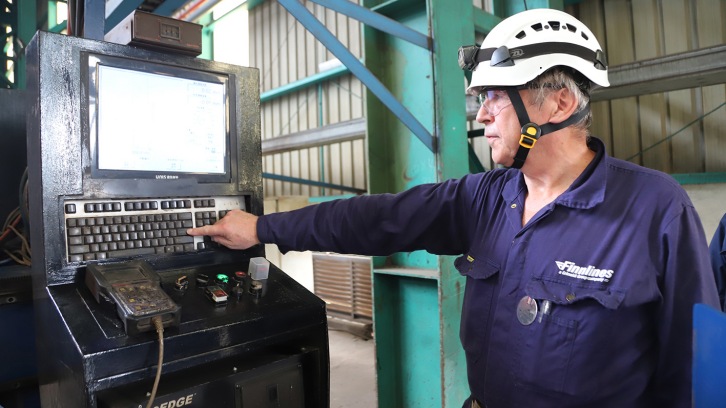 The construction of the second new hybrid ro-ro vessel started. The first steel plates are being cut in the traditional steel cutting ceremony. In the picture Finnlines’ Site Team member, Chief Engineer Olli Leino. Image by Finnlines Plc.