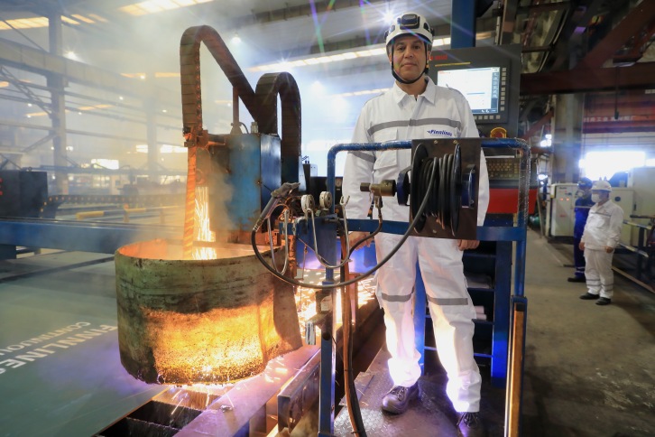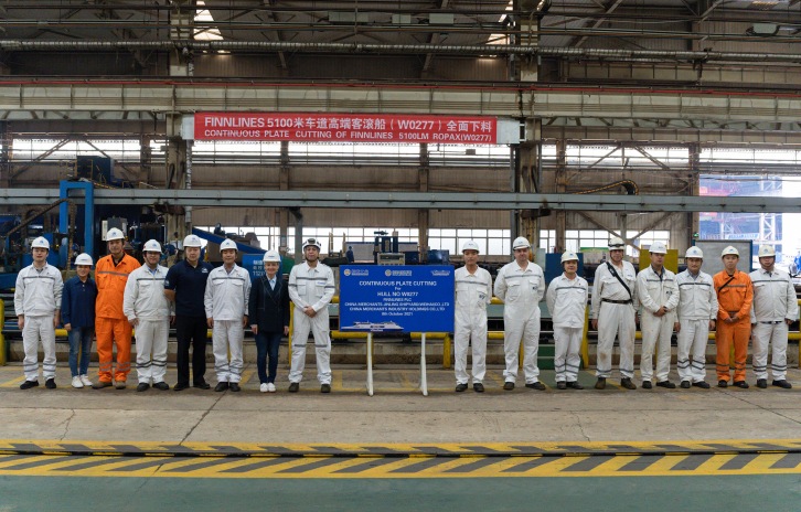 The construction of the second new Superstar ro-pax vessel started. The first steel plates were cut in the traditional steel cutting ceremony. Image by Finnlines Plc.