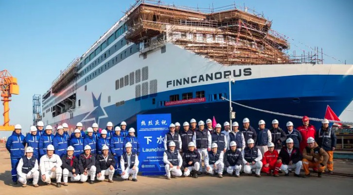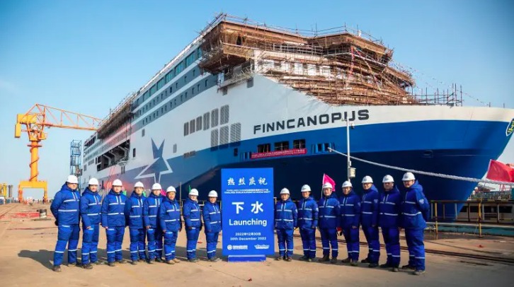 Finnlines' ro-pax newbuilding programme proceeds well. The second Superstar vessel, Finncanopus, was launched at the China Merchants Jinling Shipyard in Weihai on 30 December. The first, Finnsirius, was launched in August 2022. The new Superstar class cargo-passenger vessels, i.e. ro-pax vessels, which will enter traffic in 2023, will serve the Naantali–Långnäs–Kapellskär route between Finland, Åland Islands and Sweden. "Regular and reliable freight traffic in the Baltic Sea is the backbone of the region's economies and national security of supply. The maritime bridge between Finland and Sweden is one of the three connections in Finland important to trade and industry. Around 90 per cent of the Finnish and Swedish exports and imports are carried seaways. Our service has been very important for our customers. Increasing cargo and passenger capacity and improving passenger comfort on the route will strengthen the service," says Tom Pippingsköld, President and CEO of Finnlines. Focus on sustainability The vessels are as emission-free as possible and the Superstar vessels will be equipped with innovative technology. The air lubrication system creates air bubbles, which reduce friction and hydrodynamic resistance. The onshore power supply will provide an alternative source of energy and it will not be necessary to run auxiliary engines, which reduces emissions and noise. A high-powered battery bank will be charged in port and generate power at sea. Two-speed reduction gears will improve propulsion efficiency and save fuel. Environmentally friendly oils will be used in bow thrusters, fin stabilizers and in the cargo access equipment. Green values are also prioritised in the design of the shipboard facilities and services. As an example, lighting and ventilation can be adjusted automatically in the accommodation, which reduces energy consumption. Recycled material is used in furniture. Printed materials, such as menus, travel programmes and price lists, are replaced by digital screens and mobile apps. Furthermore, local suppliers will be favoured, which means shorter transport distances.