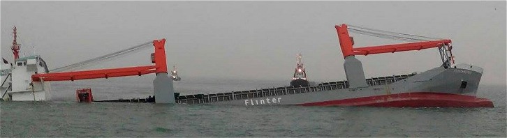 06 October 2015 This morning near the Belgian coast MV Flinterstar sunk. The crew is safe and doing well. The Flinterstar is stable, there is no emergency. At this time, we are talking to salvage companies together with insurance to decide how the vessel will be salvaged. Flinter Shared Services B.V. post on Twitter: "We are overwhelmed by all the support from many today. After the tragic collision in the early hours of this morning, we have been overjoyed that all 11 colleagues and the Pilot were safe. The crew of MV Flinterstar had to act within minutes after the bow of the other vessel had poked a fatal hole in the sides of our vessel. We are very proud of our colleagues, as they did all the right things to ensure the safety of the whole team. The fuel oil leaking is being contained as best as possible and the precautionary measures by the Belgian authorities to protect Het Zwin are important. MV Flinterstar has been inspected by divers this afternoon, these inspections will continue overnight during slack tide. This will provide valuable information about the extend of the damages, which is important for the salvage of the vessel. From all of us at Flinter we would like to extend a BIG thank you to all parties involved in the rescue operations this morning. From the Belgian and Dutch Sea Rescue institutions to the tugs, fishing, Navy and other vessels that participated in the rescue operations. You brought our colleagues safely ashore. Thank you !" Flinter Shared Services B.V. press release