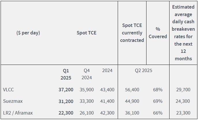 Inger M. Klemp, Chief Financial Officer of Frontline Management AS, added: "Through our refinancings in 2025, we have further strengthened our strong liquidity, leaving the Company with no meaningful debt maturities until 2030, and further reduced our borrowing costs and cash breakeven rates. We continue to focus on maintaining our competitive cost structure, breakeven levels and solid balance sheet to ensure that we are well positioned to generate significant cash flow and create value for our shareholders." Average daily TCEs and estimated cash breakeven rates