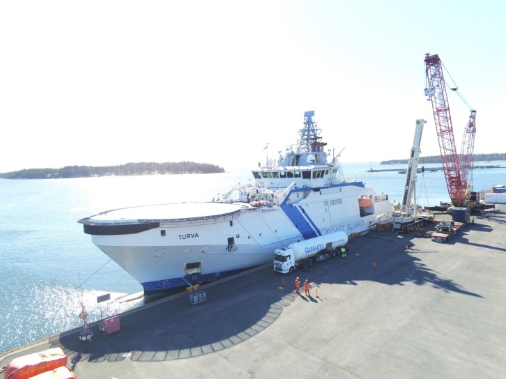 07.04.2021 Gasum performs two biogas deliveries for the Finnish Border Guard. One delivery from Risavika in Norway and another from the Turku biogas plant, in Finland. The purpose of these deliveries is to test logistics and practicalities on board as well as demonstrate biogas as a renewable energy source in maritime transport. Gasum begins test deliveries of liquefied biogas (LBG) for the Finnish Border Guard. The deliveries from Gasum’s plant in Risavika, Norway and the biogas plant in Turku, Finland to Helsinki will demonstrate liquefied biogas (LBG) as a fossil-free and 100% renewable fuel suited to the needs of maritime industry. Through the test deliveries, Gasum and the Border Guard will ensure high-performing logistics and practicalities for maritime fuel deliveries. 1 April Gasum delivered domestically produced biogas from the Turku biogas plant to Helsinki. The next delivery will take place in the coming weeks with liquefied biogas imported from Risavika, in Norway, to Helsinki via Gasum’s terminal in Pori. “We are happy to be forerunners in environmentally friendly shipping practices. Through these test deliveries we will expect to gain more experience on using biogas and to support further our efforts to reach the carbon neutrality goals Finland has set for 2035”, says Commander Marko Aheristo, the Head of Ship Technical Unit at the Finnish Border Guard. According to the current government program, Finland will be carbon-neutral by 2035. This means significant emission cuts are required in the transport sector on land and sea. By choosing biogas, it is possible to reduce the CO2 emission by up to 90 percent, making it the cleanest marine fuel available. LBG is also interchangeable with liquefied natural gas (LNG) which means that the two gases can be mixed and used in the same vessels. “Gasum has supported the Finnish Border Guard’s LNG-fueled offshore patrol vessel Turva since the beginning of her operations, and now we are very happy to continue this journey with LBG-deliveries. Using biogas alongside with LNG in marine transport is a new step forward in decarbonizing the shipping industry and we are looking forward to completing more successful trials with biogas in the near future”, says Jacob Granqvist, Vice President Maritime from Gasum.