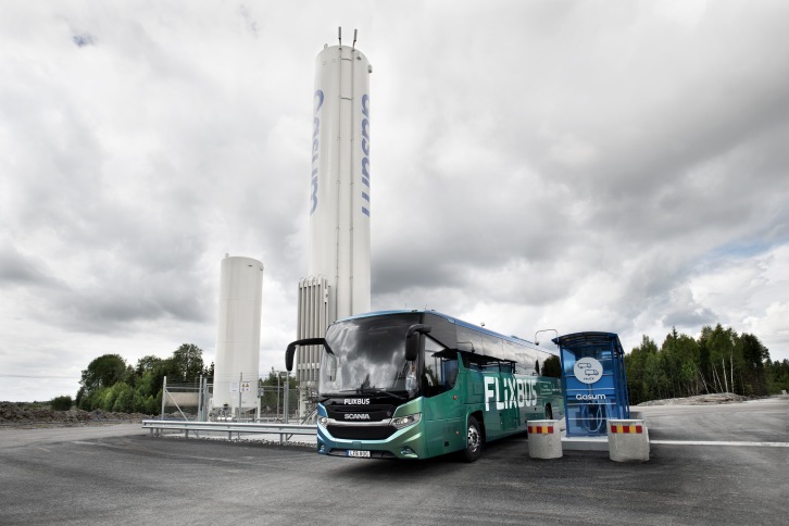 30 June 2021 Gasum has partnered with FlixBus to supply renewable biogas for its new bus operating between the capitals of Sweden and Norway. The new gas-powered bus supports both FlixBus’ and Sweden’s and Norway’s goals in emission reductions. Gasum has initiated a partnership with FlixBus on supplying liquefied biogas (LBG) for its new gas-powered bus operating between Stockholm, Sweden and Oslo, Norway. The bus is a Scania and it will start operating the route in the beginning of July. As a 100% renewable fuel, biogas perfectly supports FlixBus’ climate conscious strategy. FlixBus’ owner FlixMobility is known as the leading tech-mobility company and is eager to try new sustainable technology and fuels to lower its climate impact and reduce its carbon footprint. The gas-powered FlixBus will support both Sweden’s and Norway’s emission reduction goals. “Our vision is to offer sustainable mobility to everybody. Green-tech is at the core of our business and one of our key sustainability drivers. We ensure that the resurgence of travel is sustainable, and biogas is certainly one of the most important technologies to achieve this already today,” says André Schwämmleinn, CEO of FlixMobility. Biogas is the perfect fuel for climate-friendly busses Biogas is extremely suitable as a fuel both for long-distance buses and buses used in public transport. As an existing technology, it allows companies to immediately significantly reduce their emissions. It is also well aligned with consumers’ growing interest in low-emission ways to travel. “The partnership is a result of a great co-operation between Gasum, FlixBus and Scania. Together we are building a cleaner future. We hope that in the near future biogas will become even more common as a fuel for busses as it reduces both carbon dioxide emissions and local emissions, making it a perfect choice to decrease the impact of public transportation to cities’ air quality,” says Mikael Antonsson, Sales Director, Traffic Sweden, Gasum. Gasum is continuously expanding its Nordic gas filling station network. At the moment, the network already enables the refueling of both heavy-duty vehicles and busses across Sweden, Norway and Finland.