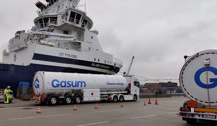 29 October 2021 Gasum bunkered liquefied biogas (LBG) for the first time to an offshore supply vessel in Norway. The fuel was delivered to Lundin Energy’s supply vessel Island Crusader. Biogas is the cleanest maritime fuel available and its demand is growing globally. The Nordic energy company Gasum has bunkered liquefied biogas (LBG) for the first time to an offshore supply vessel in Norway. The bunkering from truck to ship was performed to Lundin Energy’s supply vessel Island Crusader at the Risavika harbour, close to Stavanger. Its vessel Island Crusader is a battery hybrid running on liquefied gas and using electricity, the latter for example in harbours. Lundin Energy is one of the world’s leading sustainable oil and gas companies. The company aims to reach carbon neutrality across its operations by 2023. Among others they aim at battery hybridization of all supply and stand-by vessels on fixed contracts as part of its decarbonisation strategy. Biogas enables maritime sector to clearly reduce its emissions LBG is at the moment the cleanest maritime fuel available. It can reduce fuel’s emissions during it’s lifetime cycle up to 90 %. It is also interchangeable with liquefied natural gas (LNG) that is nowadays used more frequently as a fuel in maritime operations. Using LNG reduces the greenhouse gas emissions with up to 21% compared to conventional fuel. “We are very happy to support Lundin Energy on their journey towards carbon neutral operations. Biogas is a way to significantly reduce maritime sector’s emissions and it is available already today which makes it a viable option for companies”, says Gunnar Helmen, Gasum. Biogas is produced from organic waste and contributes to the circular economy. Gasum own and operate a number of biogas plants throughout the Nordics, and aim for increased biogas production. The Norwegian oil and gas business is facing stricter emission targets going forward. Biogas as offshore vessel fuel is an efficient solution to meet these targets. One reason being that a large number of these vessels are already running on liquefied natural gas (LNG). “Together with supporting politics we can increase the Norwegian biogas production significantly and contribute in making waste to energy pushing for the green shift, and we can do it today”, Helmen concludes. Gasum’s goal is to reach cumulative carbon emission reductions of million tons by increasing its biogas production. By 2025 the energy company intends to make 4 TWh of biogas available on the market from the company’s own production and that of its certified European partners.