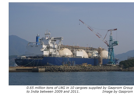 Between 2009 and 2011 Gazprom Group supplied India with 0.65 million tons of LNG in 10 cargoes.
