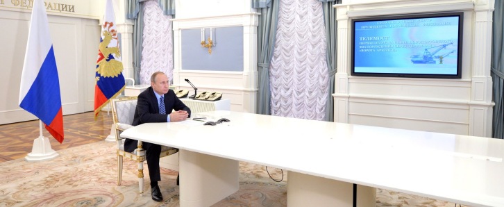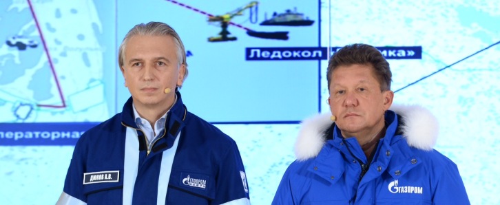 Alexander Dyukov and Alexey Miller Russian President Vladimir Putin gave the command via a video call to start loading a tanker with oil from the Novoportovskoye field.