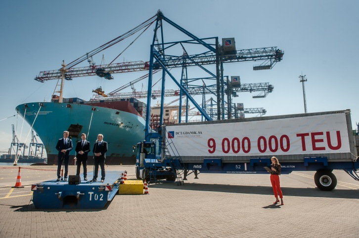 28th May 2018 The largest container terminal in Poland and the Baltic – DCT Gdansk has marked the handling of 9 million TEU (20-foot equivalent unit) since opening. Achieving such a result within ten years of operational activity is a testimony to the continuous, dynamic development of the terminal. On this occasion, the Management Board of DCT Gdansk SA, with the honor of hosting the Minister of Investment and Development, Mr. Jerzy Kwiecinski, would like to thank all the clients, partners, contractors and authorities, without whom this success would not be possible. The further development of DCT Gdansk container terminal is crucial not only for the region, but also for the entire Polish economy and its entrepreneurs who are more and more visibly increasing the potential for international economic exchange. “The DCT terminal that we see today, is the product of constant investment year after year to create a true gateway to the world for Poland. Foreign direct investment such as this requires a stable and clear regulatory framework over the long-term. I would like to thank the employees of DCT Gdansk for their hard work and also our customers for their support in developing DCT into a hub for world trade.”- says Cameron Thorpe, Chief Executive Officer of DCT Gdansk SA. “Thanks to the construction of DCT Gdansk terminal ten years ago and continuous investments in its development, Poland can now effectively compete with the largest ports in Europe, to the benefit of state budget. Handling 1,6M TEU in 2017, DCT has established itself as No 16 among top European terminals. Current growth dynamics, which quarter to quarter exceeds 40%, allow us to believe that this position will be at least maintained. It will have a direct influence on the increase in income to Polish budget due to customs, VAT and excise duty. In the first quarter of 2018 it was already 2.1 billion Polish zloty (EUR 470 million)” – adds Adam Zolnowski, Chief Financial Officer of DCT Gdansk. Today DCT Gdansk has 1.3km of deep-water quay-line, eleven STS cranes, and handles over 460 vessels per year, including over 100 direct calls from Asia by the largest container vessels in the world. Now the terminal is implementing the next investment – T2b project, which includes buying new terminal equipment, extending the yard area, fully optimizing and automating the gate complex for truck drivers and significantly upgrading rail capacity. DCT Gdansk, Gateway to Poland and Central, Eastern Europe. About DCT: DCT Gdansk enables Poland to be connected to the largest shipping trade-lane between Europe and Asia. A vital piece of direct foreign investment, ensuring that Polish goods can trade with China more efficiently, reducing cost, providing more competitive delivery times and a lower carbon footprint per container than alternative ports. In 2017 DCT Gdansk handled almost 1.6m TEU, with direct calls by the largest ships afloat. DCT Gdansk is the only terminal in the Baltic Sea capable of handling ships of this size. DCT does not just serve Poland but is also one of the most efficient ways to serve the Baltic Sea market via transshipment and also the most cost competitive way to serve the hinterland markets of the Czech Republic and Slovakia and elsewhere. With a track-record of continuous development and expenditure in terminal infrastructure and modern handling equipment, DCT Gdansk is also actively involved in activities for the protection of the environment and the local community, recognizing in them the foundation of sustainable socio-economic development. DCT Gdansk press release