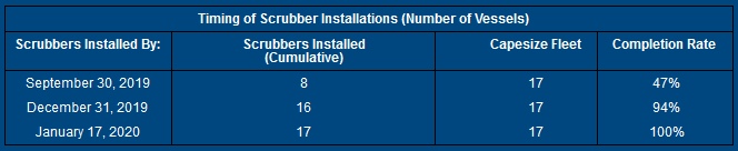 New York - Jan 29, 2020 Genco Shipping & Trading Limited (NYSE: GNK) (“Genco” or the “Company”) announced today the completion of its exhaust gas cleaning systems (“scrubbers”) program which consisted of installing scrubbers on Genco’s 17 Capesize vessels. This represents a key pillar of our previously announced comprehensive plan towards compliance with International Maritime Organization (“IMO”) regulations that limit sulfur emissions from vessels to 0.5% down from 3.5% on a global basis to improve air quality. John C. Wobensmith, Chief Executive Officer, commented, “The execution of our scrubber program marks an important step for Genco in what was the busiest drydocking period in Company history. The completion of this initiative has enabled us to comply with IMO 2020 regulations in a manner that meaningfully reduces sulfur emissions and strengthens our future prospects. Specifically, given the timely nature of our scrubber retrofits on our Capesize vessels, we have been able to capture the differentials between compliant and high sulfur fuel so far in the early stages of compliance, significantly de-risking the initial investment. With no scheduled drydockings for our Capesize vessels for the balance of 2020, we plan to maximize fleet-wide utilization for these vessels while re-implementing our active chartering approach. As such, we strategically repositioned select Capesize vessels after the completion of their scrubber installations towards the Atlantic Basin during the end of 2019 to better capture market fundamentals. With a sizeable fleet and strong balance sheet, including an estimated $162 million of cash as of December 31, 2019, Genco remains poised to capitalize on favorable long-term drybulk supply and demand fundamentals, while creating near-term shareholder value through our regular quarterly cash dividend policy of $0.175 per share.” In addition to the installation of scrubbers on our 17 Capesize vessels, the balance of our fleet consisting of minor bulk vessels is consuming ultra-low sulfur compliant fuel.