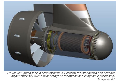 “Inovelis is a new concept that brings better performance—both improved thrust capability as well as improved hydrodynamics—combined maximize performance of pod technology and will bring fuel efficiency,” says Paul English, marine leader of GE Power Conversion. He cites a PSV driven by two 2.5-megawatt Inovelis pods, operating 30 percent of the time in transit at full speed. “The benefit in terms of fuel savings could be, based on our estimates, up to $250,000 in one year,” English says. “There is a clear trend towards larger, more capable offshore support vessels and a second trend towards the search for oil and gas taking these vessels ever further from home ports,” says English. “Ship operators are looking for systems that support cost-effective, fuel-efficient, rapid transit without sacrificing the capability to operate effectively and efficiently once on site in DP mode. This raises a dilemma as many current designs are a compromise between these two differing requirements.” Inovelis is different. It’s a system designed to best suit the performance and fuel efficiency needs of both modes of operation, transit and DP. English says that the Inovelis advantage is so significant that it has the potential to permit ship designers to incorporate reduced capacity power plant—fewer cylinders or smaller engines—when designing offshore vessels. Inovelis uses GE’s innovative induction motor technology, which brings further reliability and helps reduce maintenance requirements. In fact, the pod has a “no man access” design, which helps reduce overall size and provides an additional differentiation from other designs. Inovelis exemplifies GE’s expertise across electrical propulsion and power technology. “When the combination of engines, electrical power plant, Inovelis thruster and control systems such as DP are correctly designed and optimized as a system, there can be massive advantages in terms of initial cost and lifetime cost,” says English. “Great components become great systems, and the benefits endure for the lifetime of the ship.” GE already has received a number of orders all destined for large PSVs. The first is scheduled for delivery in the second quarter of this year, with ship commissioning around the end of the year.GE Power Conversion’s product and system portfolio for offshore vessels includes power generation, electric propulsion, drilling systems, DP and ship automation systems. About GE Power Conversion GE’s Power Conversion business applies the science and systems of power conversion to help drive the electrification of the world’s energy infrastructure by designing and delivering advanced motor, drive and control technologies that evolve today’s industrial processes for a cleaner, more productive future. Serving specialized sectors such as energy, marine, oil and gas, renewables and industry, through customized solutions and advanced technologies, GE Power Conversion partners with customers to maximize efficiency. To learn more, please visit: www.gepowerconversion.com. About GE GE (NYSE: GE) works on things that matter. The best people and the best technologies taking on the toughest challenges. Finding solutions in energy, health and home, transportation and finance. Building, powering, moving and curing the world. Not just imagining. Doing. GE works. For more information, visit the company's website at www.ge.com. General Electric Company - Press Release |