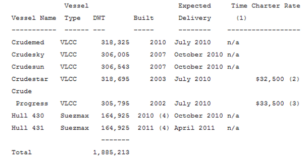 John P. Tavlarios, President of General Maritime Corporation, commented, "We are pleased to continue our tradition of entering into value-creating transactions for shareholders and have once again seized an attractive opportunity to consolidate the tanker market. With this acquisition, we expect to grow our high-quality fleet by approximately 50% on a tonnage basis, further improve the age profile of our fleet and increase our presence in the attractive VLCC market. General Maritime's exposure to a number of oil tanker subsectors and the product sector combined with its flexible fleet deployment strategy, position the Company to maximize long-term cash flow and achieve a level of stability in results." Jeffrey D. Pribor, Chief Financial Officer of General Maritime Corporation, stated, "Since its inception, General Maritime has remained committed to actively consolidating the industry in a manner that meets a strict set of return criteria. In maintaining our disciplined approach, we have entered into an agreement to acquire seven modern vessels at a price we believe to be favorable and accretive to earnings per share and will increase the Company's long-term earnings power. We continue to receive support from world-class banks and have already obtained a commitment letter to finance up to 60% of this acquisition." The following table sets forth information about the seven vessels to be acquired by the Company: