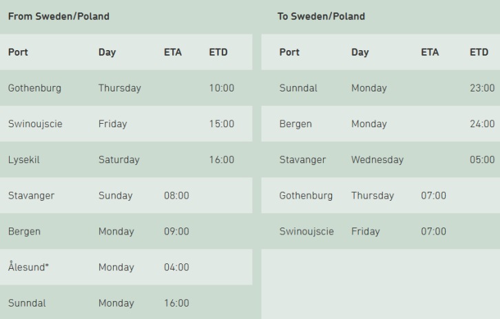 The schedule is subject to changes. * By inducement. Port of Gothenburg press release