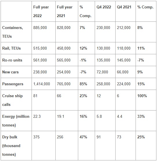 20 January 2023 The strained situation in the global transport system that has prevailed over the year has been managed well at the Port of Gothenburg. The port has also increased the freight volume handled in total, and is also winning market shares in all segments. Container handling via the Port of Gothenburg continues to increase. The final quarter of 2022 saw an increase of 8%, which means that the port is seeing growth in container volume for the ninth successive quarter. 885,000 TEUs* were handled at the Port of Gothenburg in the full year 2022, an increase of 7%. Most of the port’s container volumes are handled by the terminal operator APM Terminals. The total Swedish container market remained unchanged in 2022**. This means that the volume increase at the Port of Gothenburg represents an increase in market share from 50% to 53%. The Port of Gothenburg also increased its market share compared with nearby major ports in Northern Europe. Transporting container freight by rail to and from the port’s inland terminals all over the country is very common. The volume of container freight being transported by rail increased by 12% to 515,000 TEUs. The increase is in both long-distance and more short-distance rail operations, although the biggest increase is evident in traffic to and from Northern Sweden. In 2023, additional rail operations that have now been agreed will start to serve the port from destinations all over Sweden. New vehicles, ro-ro and energy The vehicle segment was adversely affected during the year by factors such as component shortages and low sales of new vehicles, both in Sweden and abroad, and this is reflected in the Port of Gothenburg’s volume figures. The final quarter of 2022 did, however, see a recovery, as volumes increased by 9% compared with the same quarter in 2021, even though the full year 2022 ended with a reduction of 7% in total. There was, however, a 1% increase in market share for Port of Gothenburg. Intra-European ro-ro traffic fell by 1% during the full year 2022, although the Port of Gothenburg’s market share increased from 17 to 18%. The handling of energy products increased by 16% for the full year 2022. Both unloading of refined products and storage of unrefined products increased. The market share grew from 36% to 40%. Looking ahead with Elvir Dzanic, CEO of the Gothenburg Port Authority "Towards the end of 2022, we started to see a return to normal conditions in the logistics system after the years of pandemic accompanied by bottleneck problems, closures and shortages in both capacity and ships. With a coming recession and reduced global demand for transport activities, we are seeing an increasing global surplus of ships and equipment in many segments, which is affecting prices in the market.