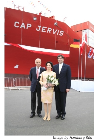 As part of a customer event, Hamburg Süd christened the "Cap Jervis" in Callao (Peru) on Monday, 8 November 2010. She is the first container vessel ever to have been christened in Callao and has a slot capacity of 4,600 TEU. Sponsor of the "Cap Jervis" was Adelgunde Christmann, wife of Dr Albert Christmann, Chairman of the Executive Board of Radeberger Gruppe KG.