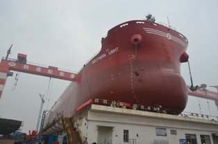 (HullNo.: HT64-132) 16 June 2015 On 15th June 2015,the 64000DWT Bulk carrier (HT64-132) we built for LIGHTHOUSE is successfully launched on No.2 slipway of Hantong. The vessel is class approved by DNV GL. The company leadership together with the representatives of the ship-owner and the class all attend the ceremony. Hantong Ship Heavy Industry Co. Ltd. press release