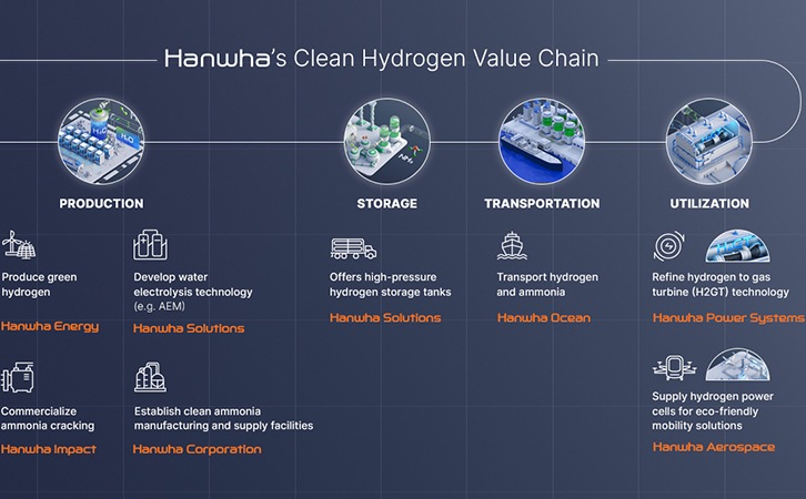 Hanwha showcased a future comprehensive clean hydrogen value chain that leverages collaborative efforts from seven of its affiliates. Image by Hanwha.