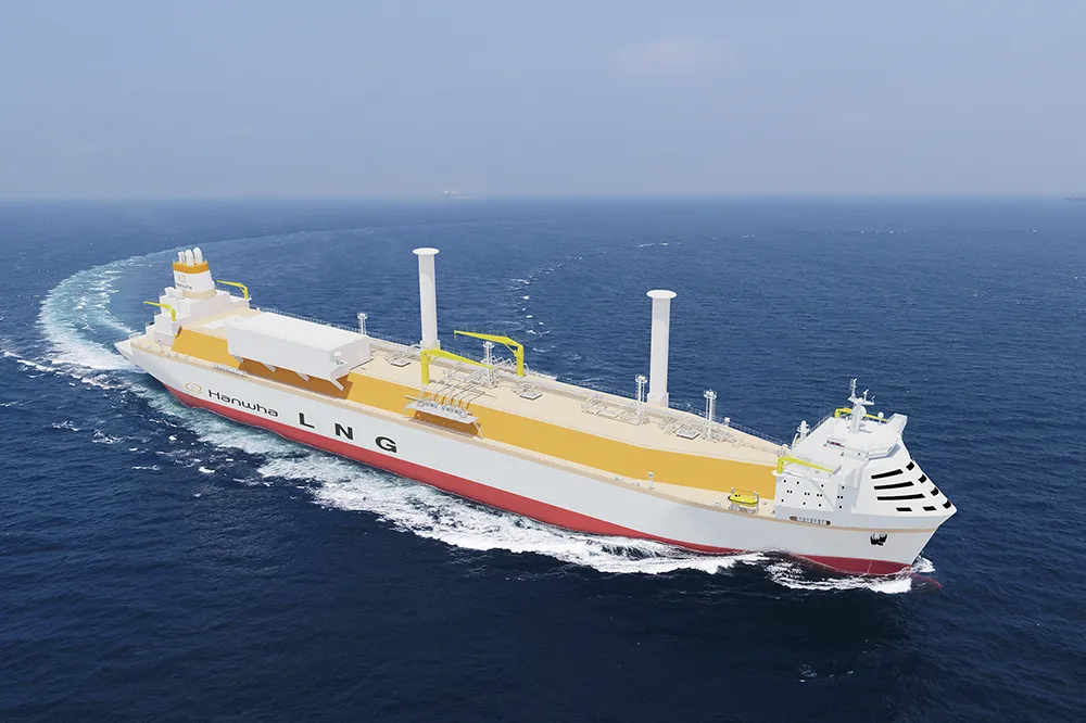 Hanwha Ocean's LNG carrier powered by an ammonia gas turbine. Image by Hanwha.